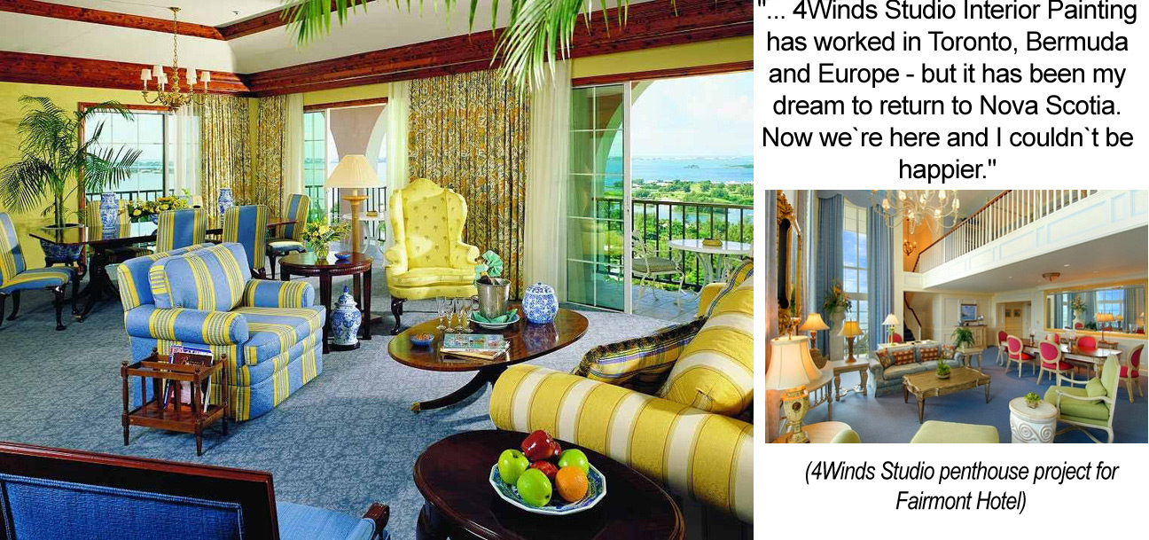 Four Winds Studio Interior Painting was formed 19 years ago in Toronto, expanded to Bermuda, with projects in Europe and the U.S.  But it has always been my dream to return to Nova Scotia.  I lived here for 4 years when I was a child and I knew even then that Nova Scotia would always be home in my heart. Now that I’m here, I’d love to show you what Four Winds Studio Fine Interior Painting can do for your next room or project.